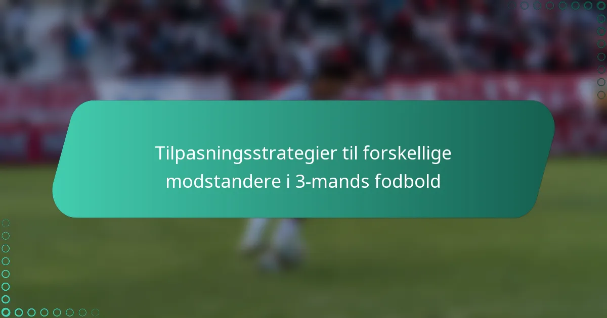 Modstanderanalysen i 3-mands fodbold fokuserer på at forstå styrkerne, svaghederne og spillestilene hos rivaliserende hold. Denne viden gør det muligt for holdene at tilpasse deres strategier effektivt, hvilket øger deres chancer for succes på banen.