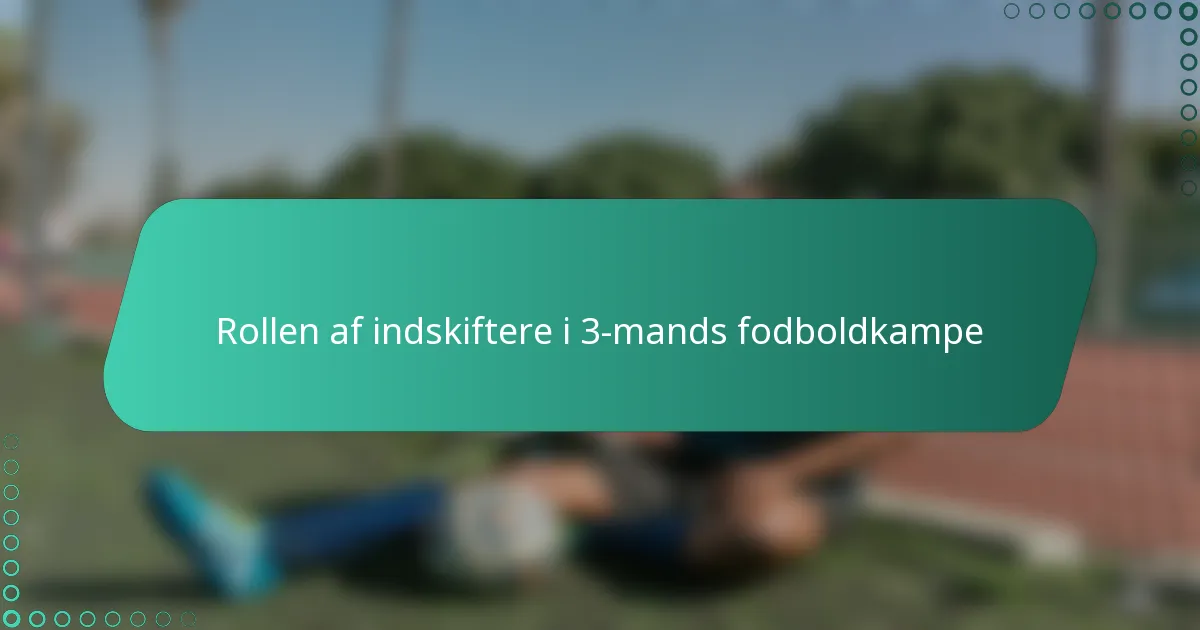 Indskiftninger spiller en afgørende rolle i 3-mands fodboldkampe ved at håndtere spillertræthed, forbedre holdpræstation og påvirke kampdynamikken. Effektiv brug af indskiftninger kan betydeligt ændre spillets flow, hvilket giver holdene mulighed for at opretholde energiniveauerne og tilpasse strategierne efter behov.